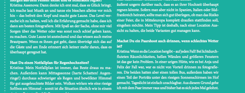 Anja and Felix shared the same values with me and I love them for it! We had so much fun playing around with different perspectives during the portrait shoot and I’m happy the MarryMagmagazine showed their rain wedding at Alpe Hohenegg. Get more behind the scenes information of what it is like to get married in the rain directly from the couple in the new MarryMag issue no. 3 – ten pages full of tips including the wedding planning duo of Hochzeitskonzept. In stores right now! 🙂
